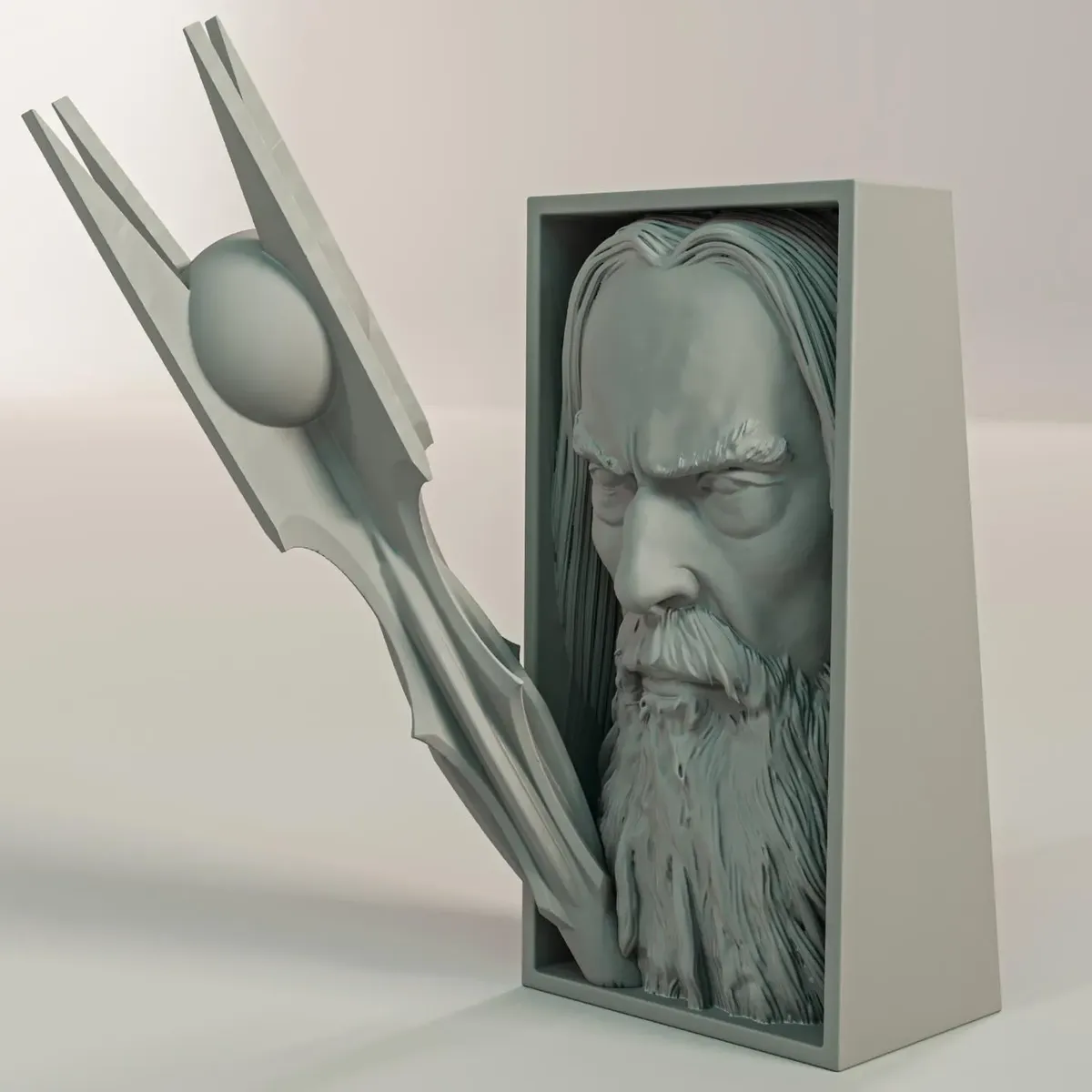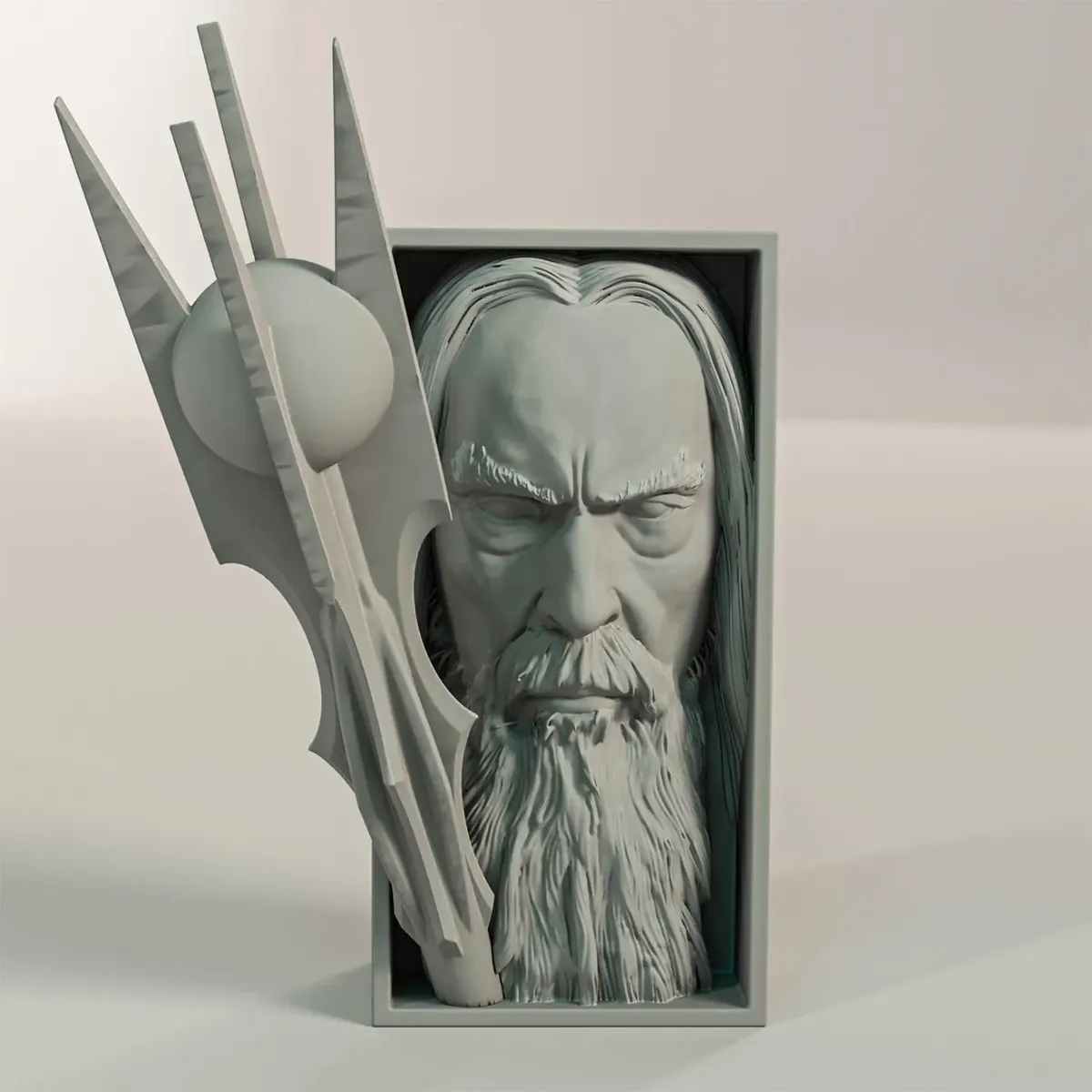 NonOfYourBusinessBring the magic of a timeless fantasy world to your bookshelf with this Saruman-Inspired Book Nook. Meticulously 3D-printed and hand-finished, this unique shelf insert transforms your library into a mystical portal—whether you imagine Rivendell, Moria, or the peaceful Shire.