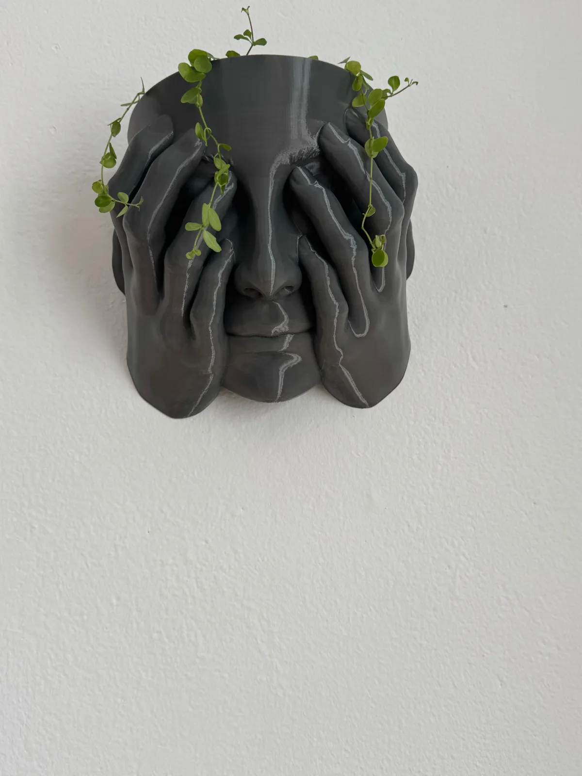 HomeDecorDesignAdd an artistic touch and depth to your interior with this enchanting wall planter. Designed in the shape of a hiding human face, this piece symbolizes reflection, wisdom, and tranquility. It can be used as a planter for your favorite succulents or air plants, or as a wall decoration that will spark conversation. A perfect choice for those seeking a unique accent piece for modern, bohemian, or eclectic interiors.