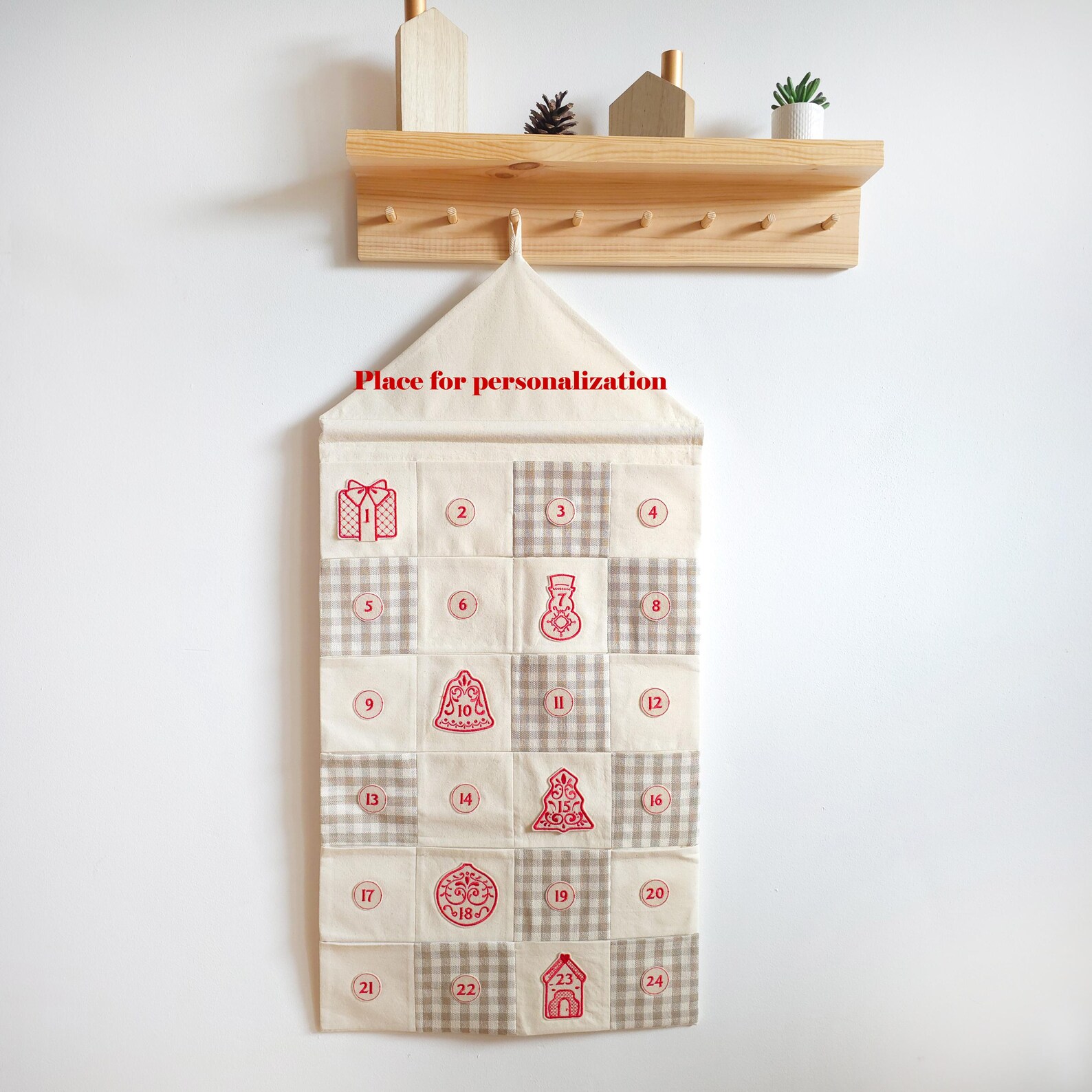 Create unforgettable holiday memories with our Advent Calendar – a beautifully crafted fabric advent made from soft cotton. This reusable Christmas countdown is the perfect cotton calendar for decorating your home and celebrating the season with family. A Personalization Calendar option allows you to add an embroidered name, transforming it into a unique Christmas Calendar. Designed as a Family Calendar, this calendar with pockets holds 24 small gifts or surprises, making every day before Christmas special. Perfect for kids, adults, and anyone who loves festive traditions.