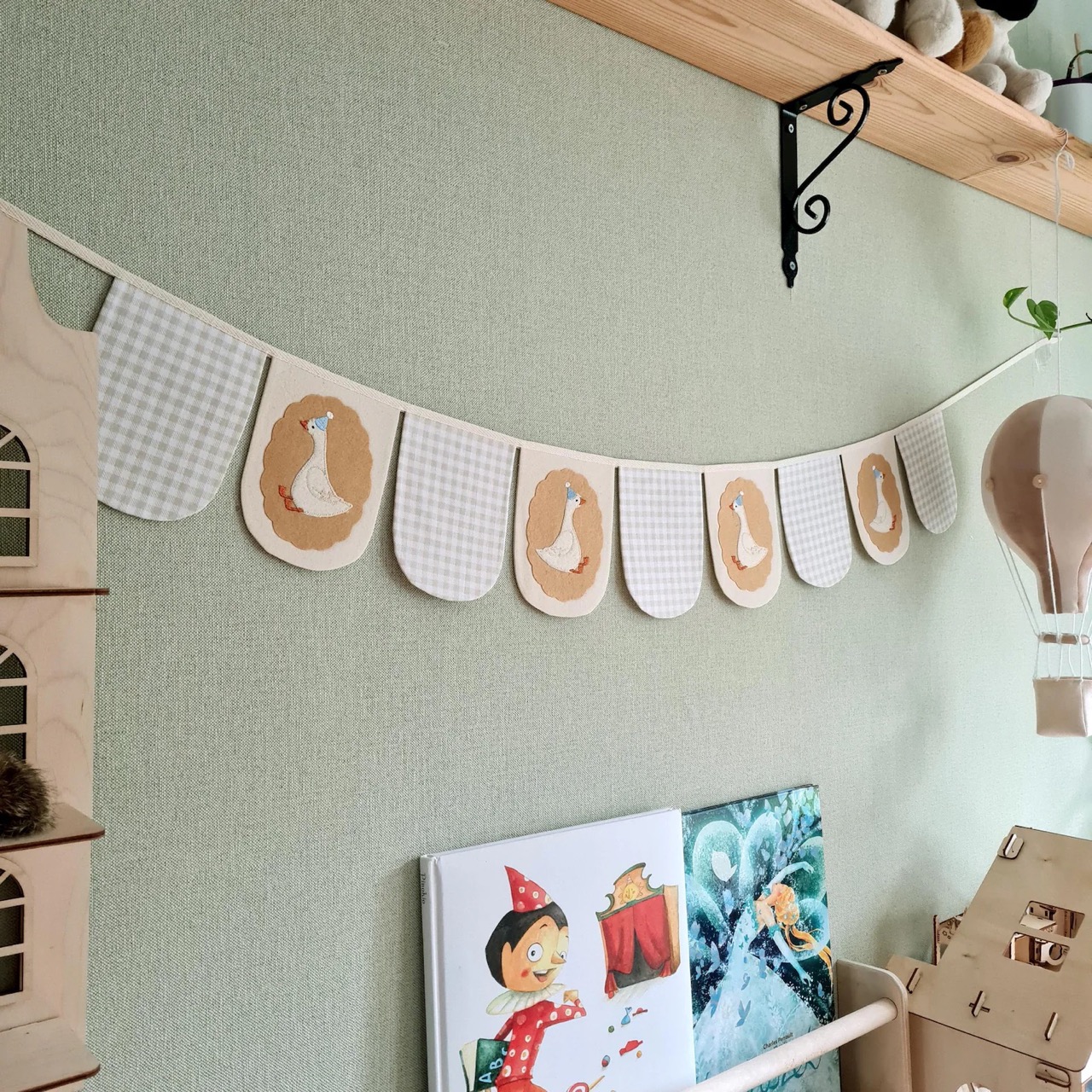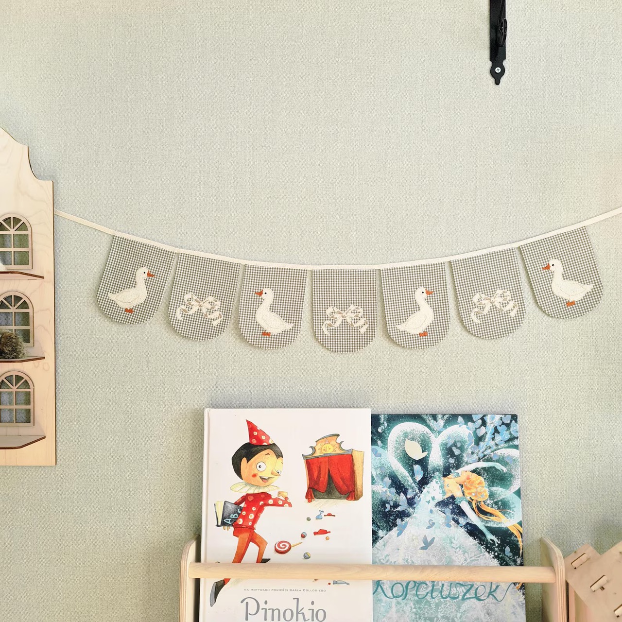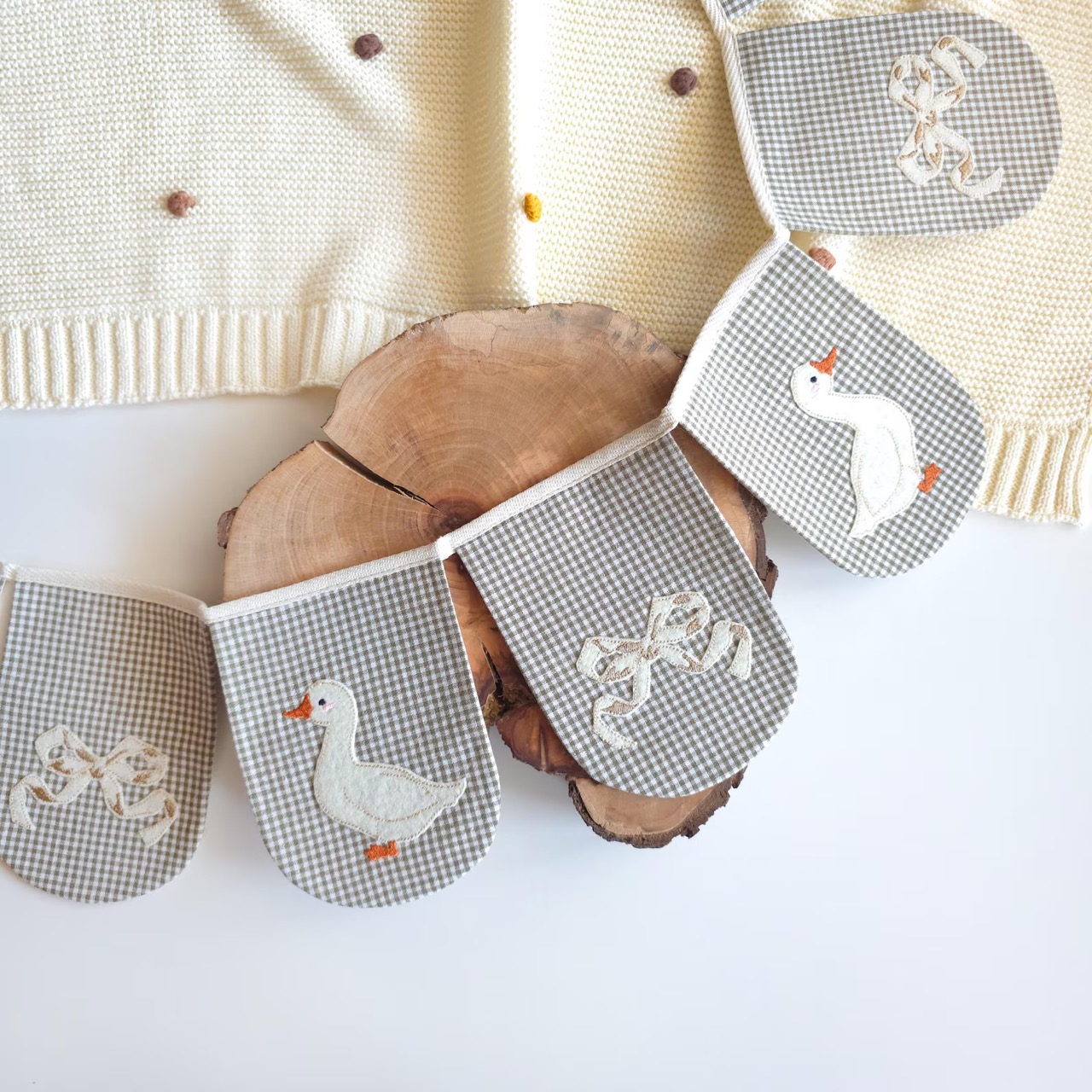 Goose Nursery Decor – Cute Goose Garland with Embroidered Bows – Handmade Cotton Bunting for Baby Room or Holiday Celebration