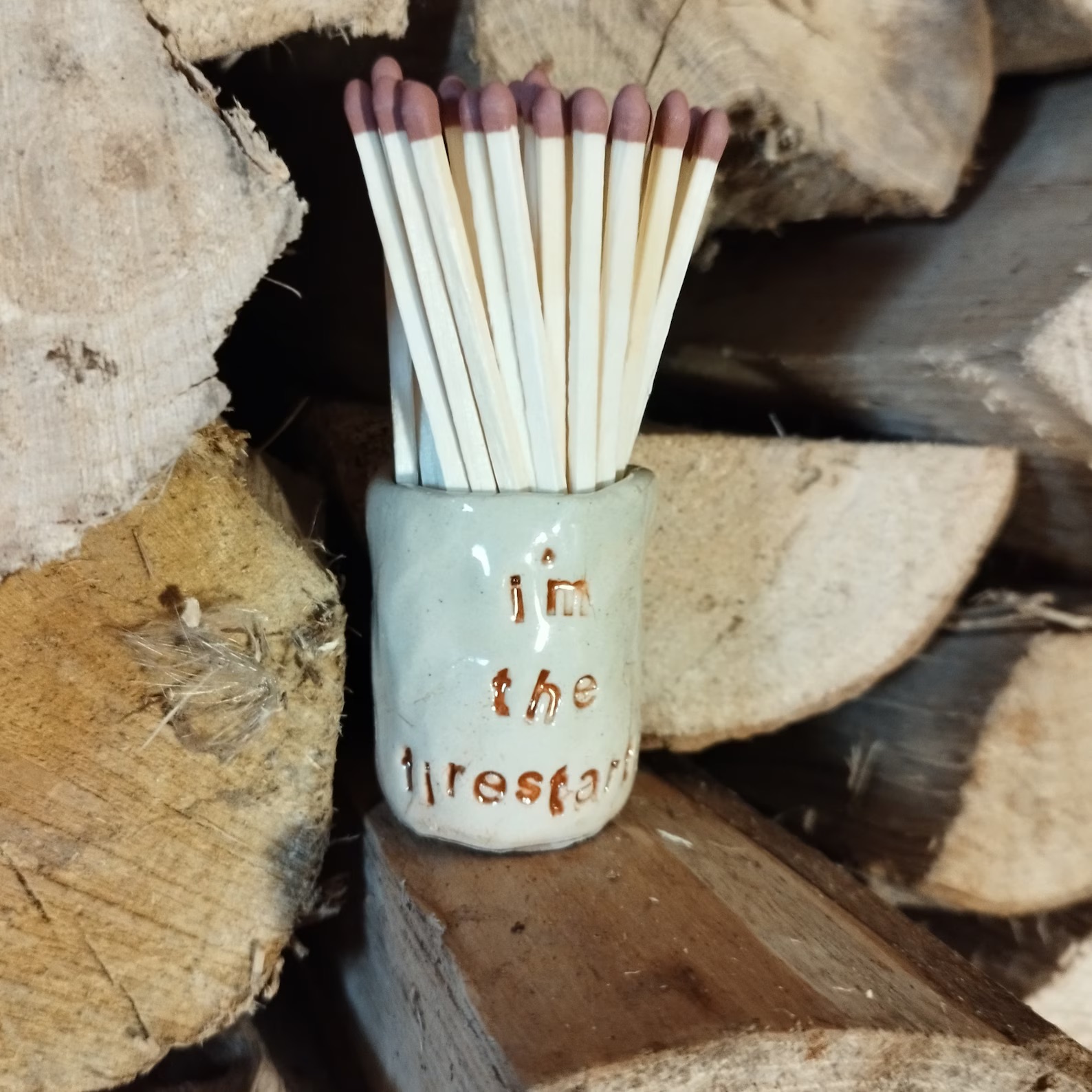 Created because we all need something more beautiful than a match box for lighting our fires!
