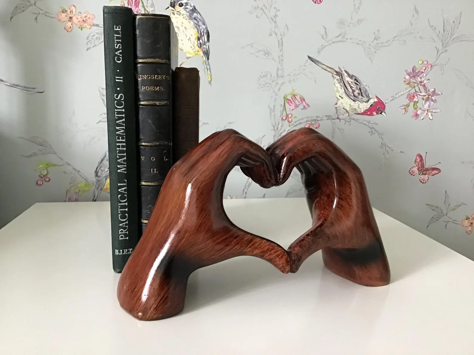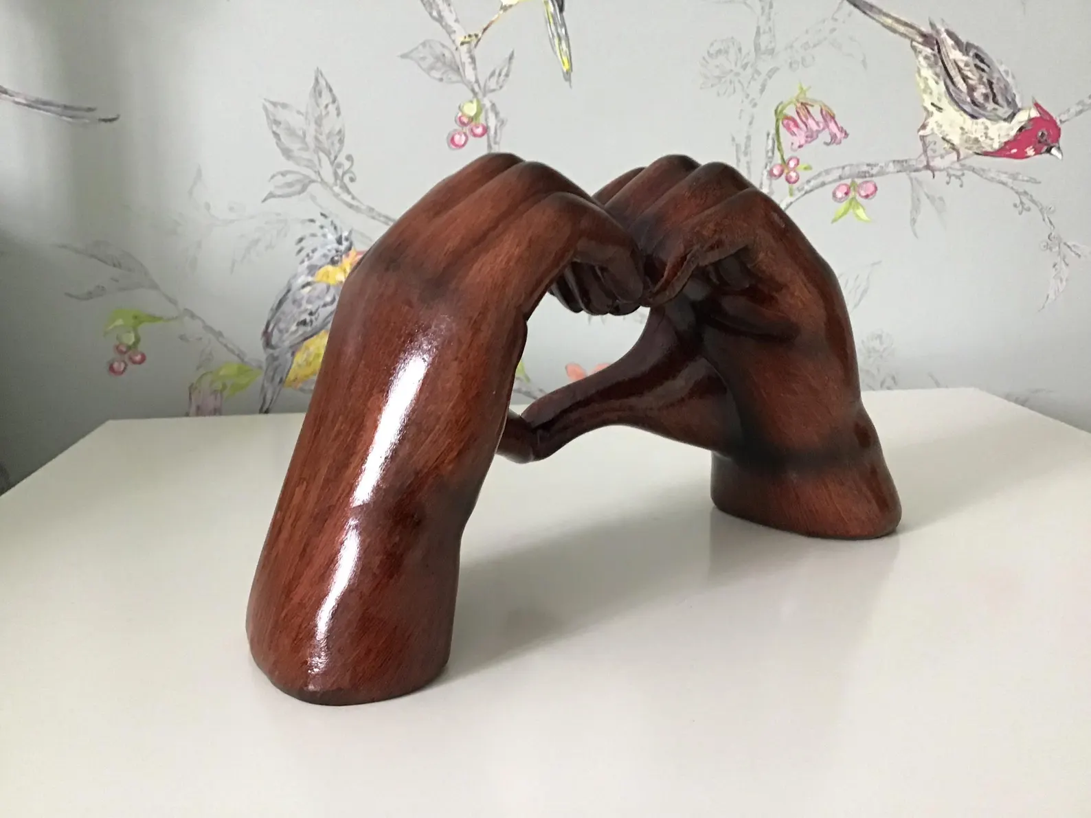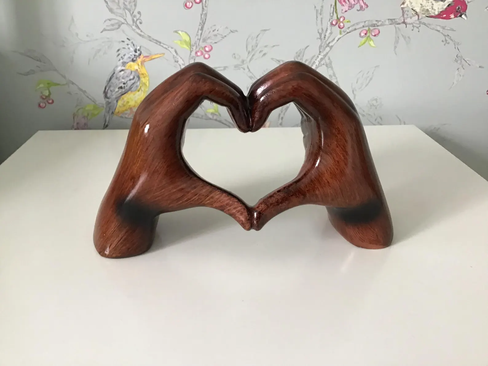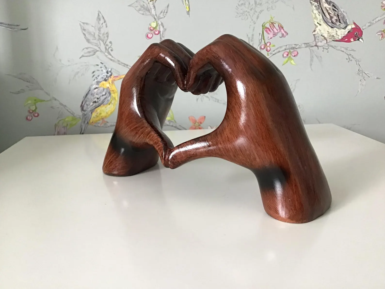 Beautiful hands heart gesture with a lovely wood effect hand painted finish, ornament looks stunning on a shelf or desk. Lovely gift for someone or a great edition to your home decor.