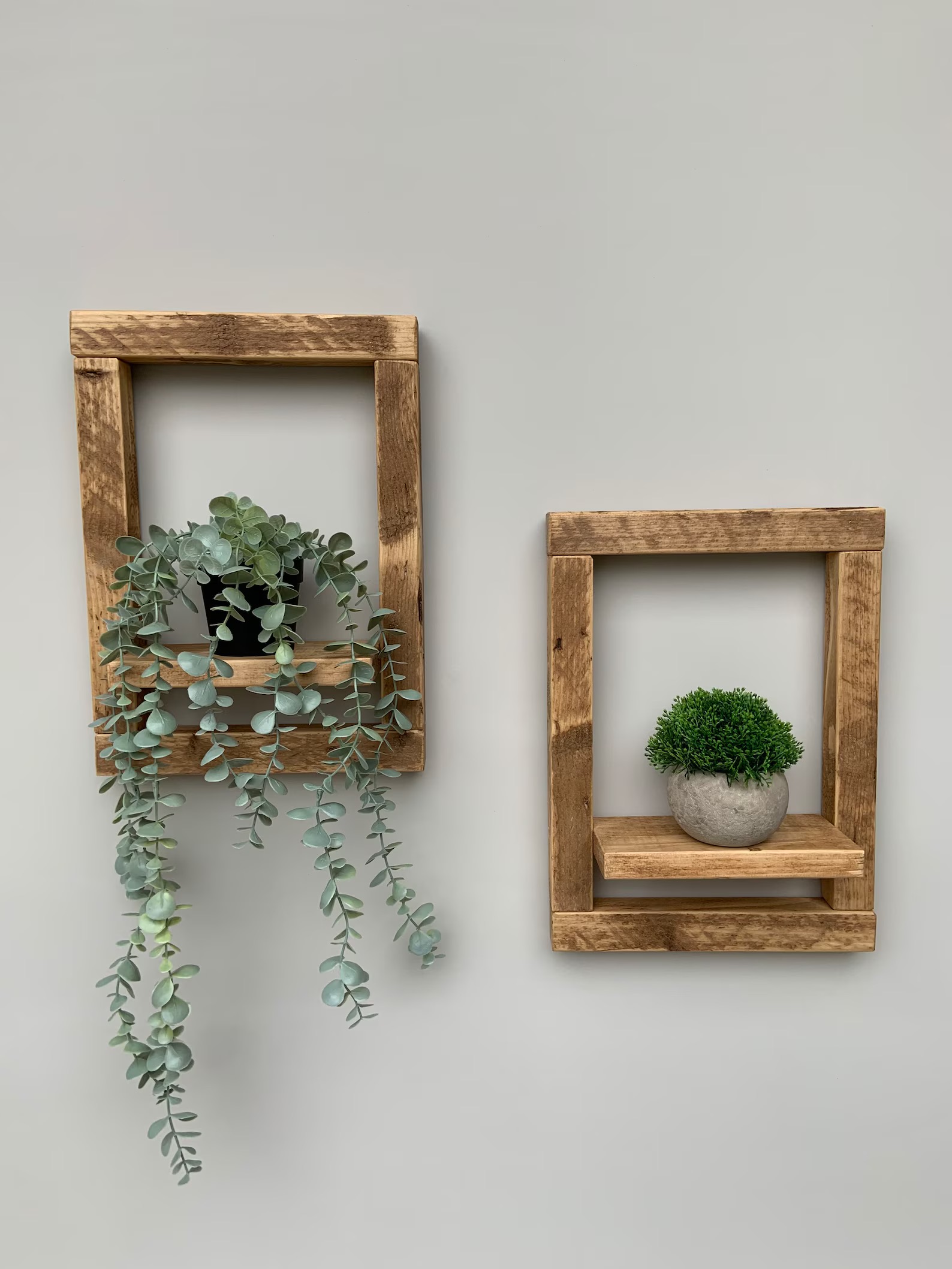 The shelves are finished with our premium light brown wax to give it that rustic feel!