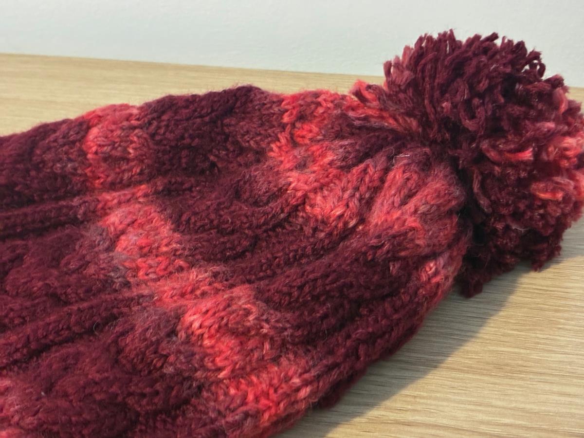 Handmade Wool Burgundy Pom Pom Knit Beanie