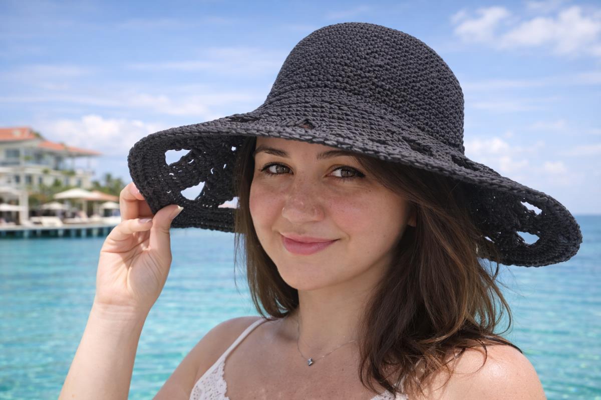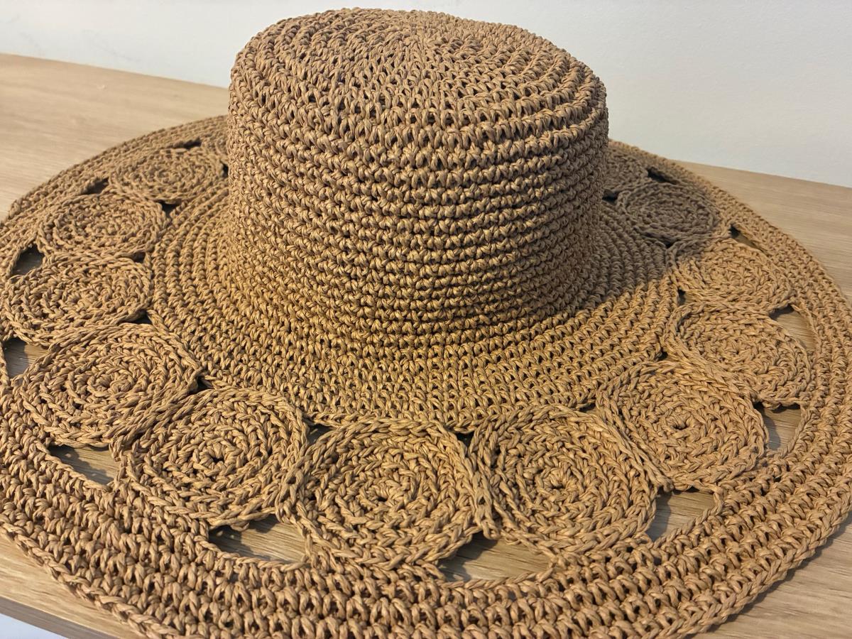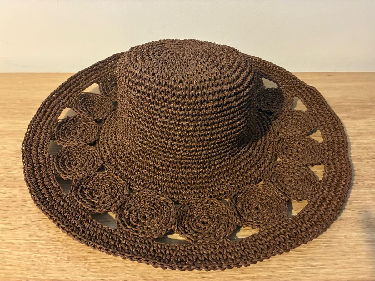 This hat is handmade from raffia paper yarn, offering a lightweight and breathable feel perfect for summer days. With its natural straw-like texture, it’s an elegant and timeless accessory for the beach, vacations, or everyday summer outfits.