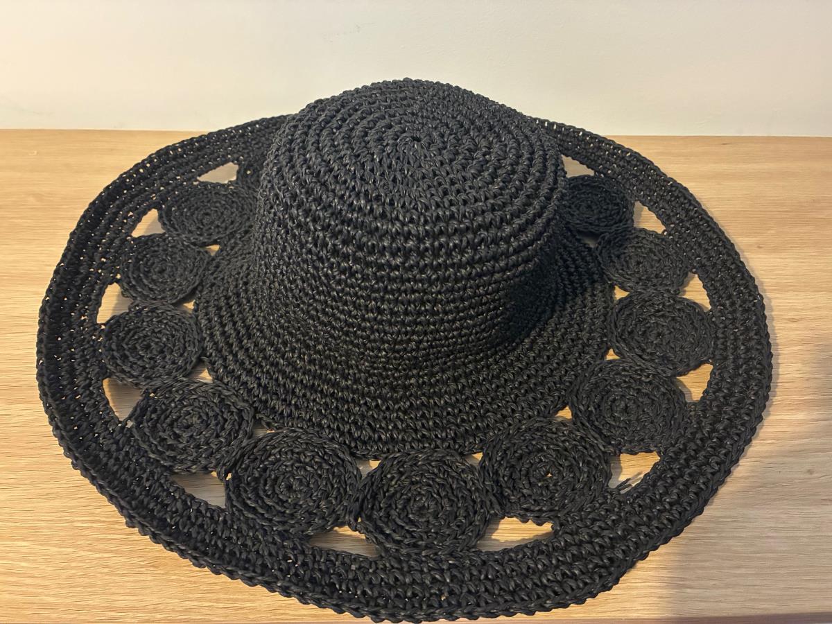 Luxury Handmade Raffia Paper Straw Hat Summer Crochet Hat Black Brown & Beige