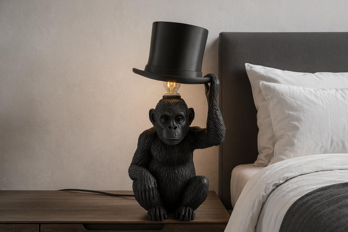 This unique table lamp is both functional and decorative — a perfect conversation starter for your living room, bedroom, office, or studio. The warm light shining through the hat creates a cozy and relaxing atmosphere, while the playful monkey design adds character and fun.