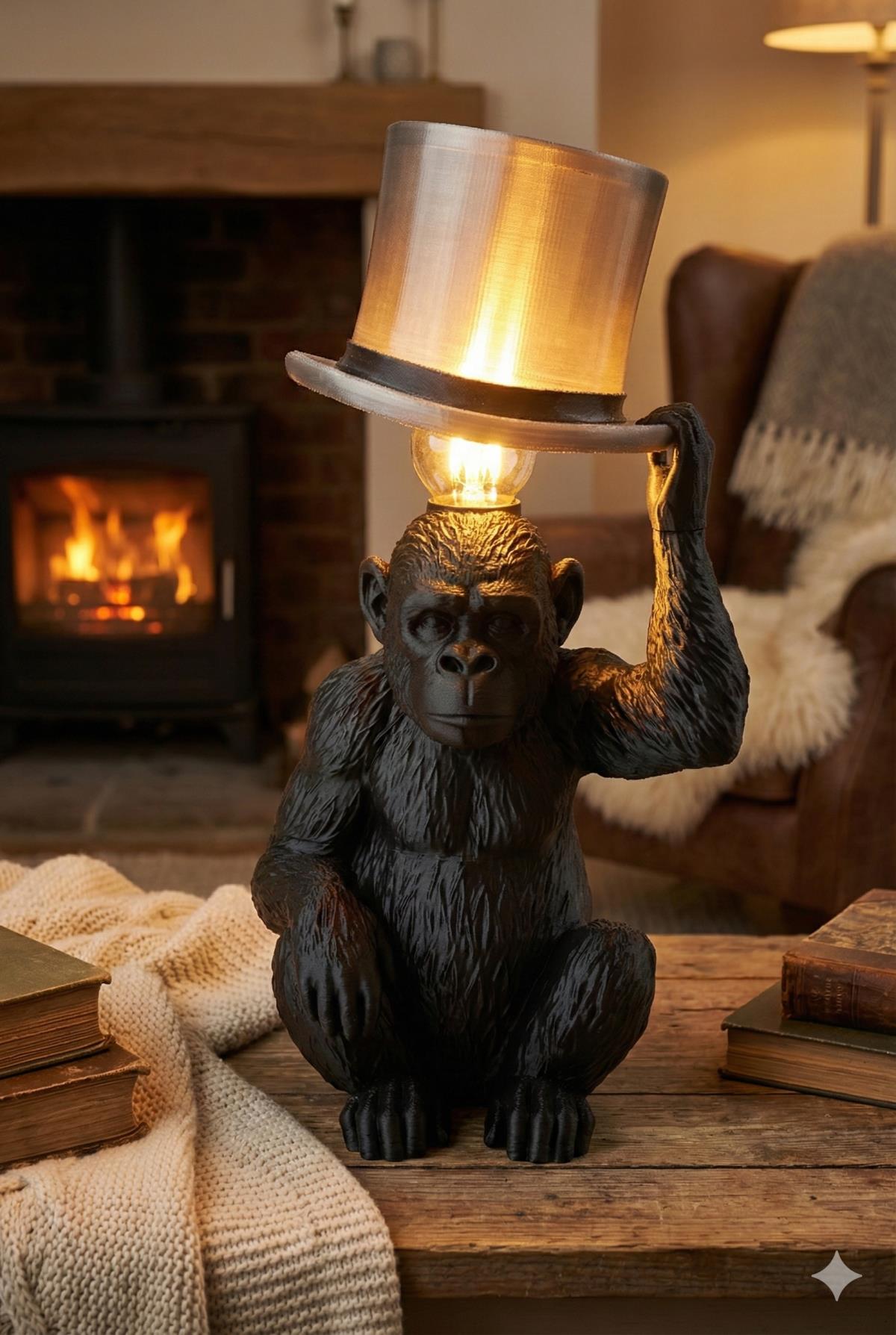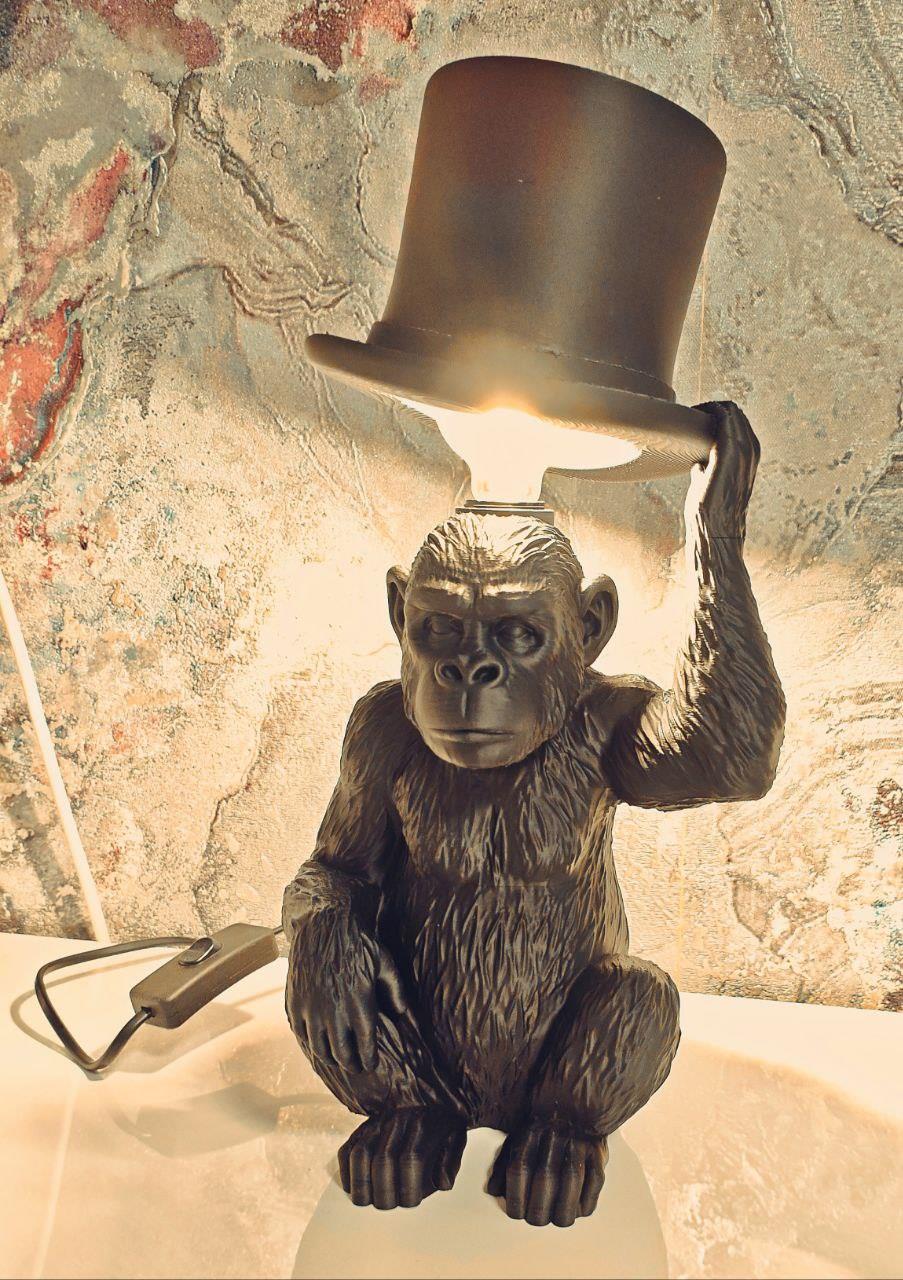 Add personality and charm to your space with this eye-catching 3D printed monkey lamp with a stylish top hat!
