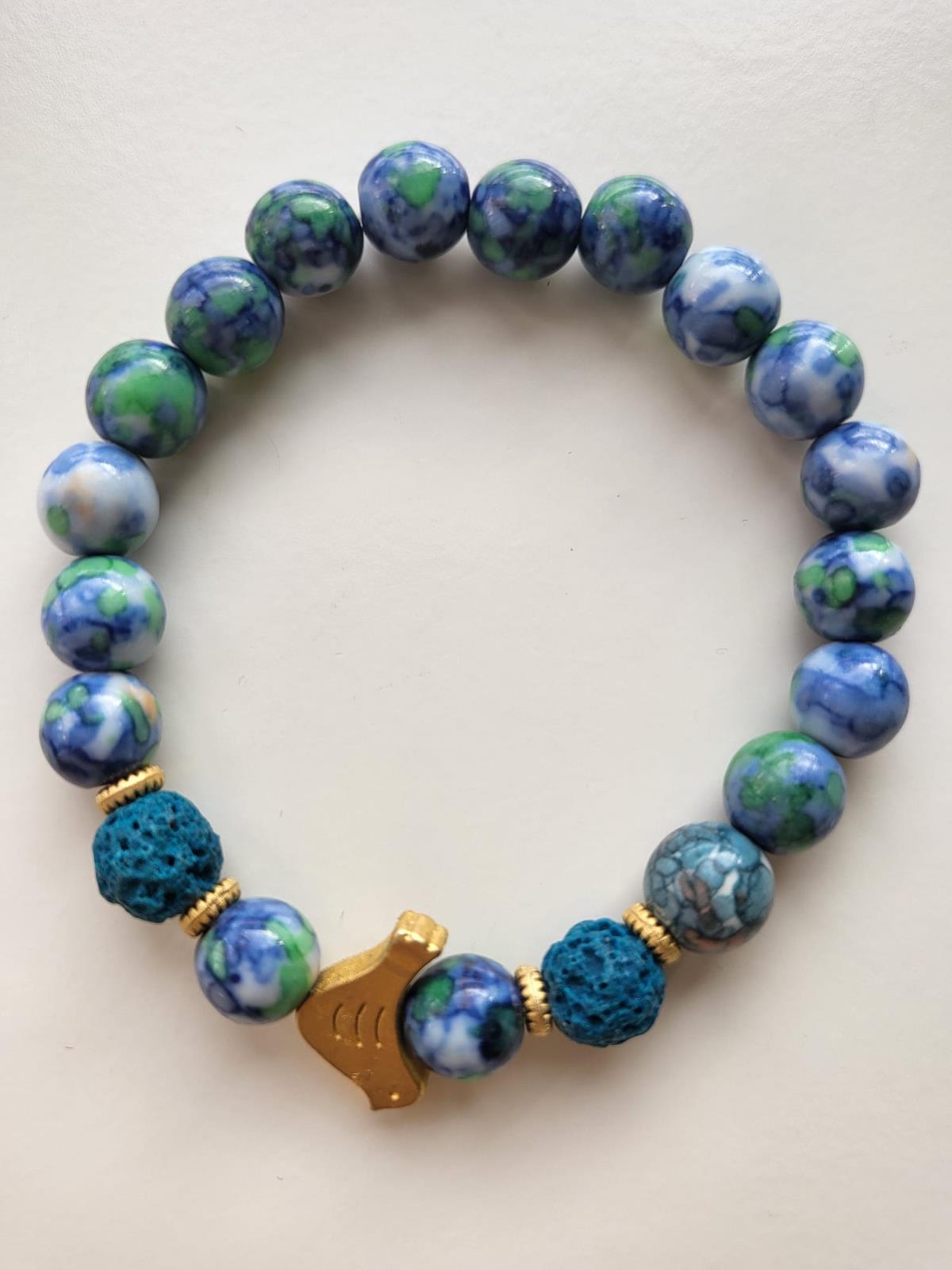 • Natural Variscite & lava stone beads