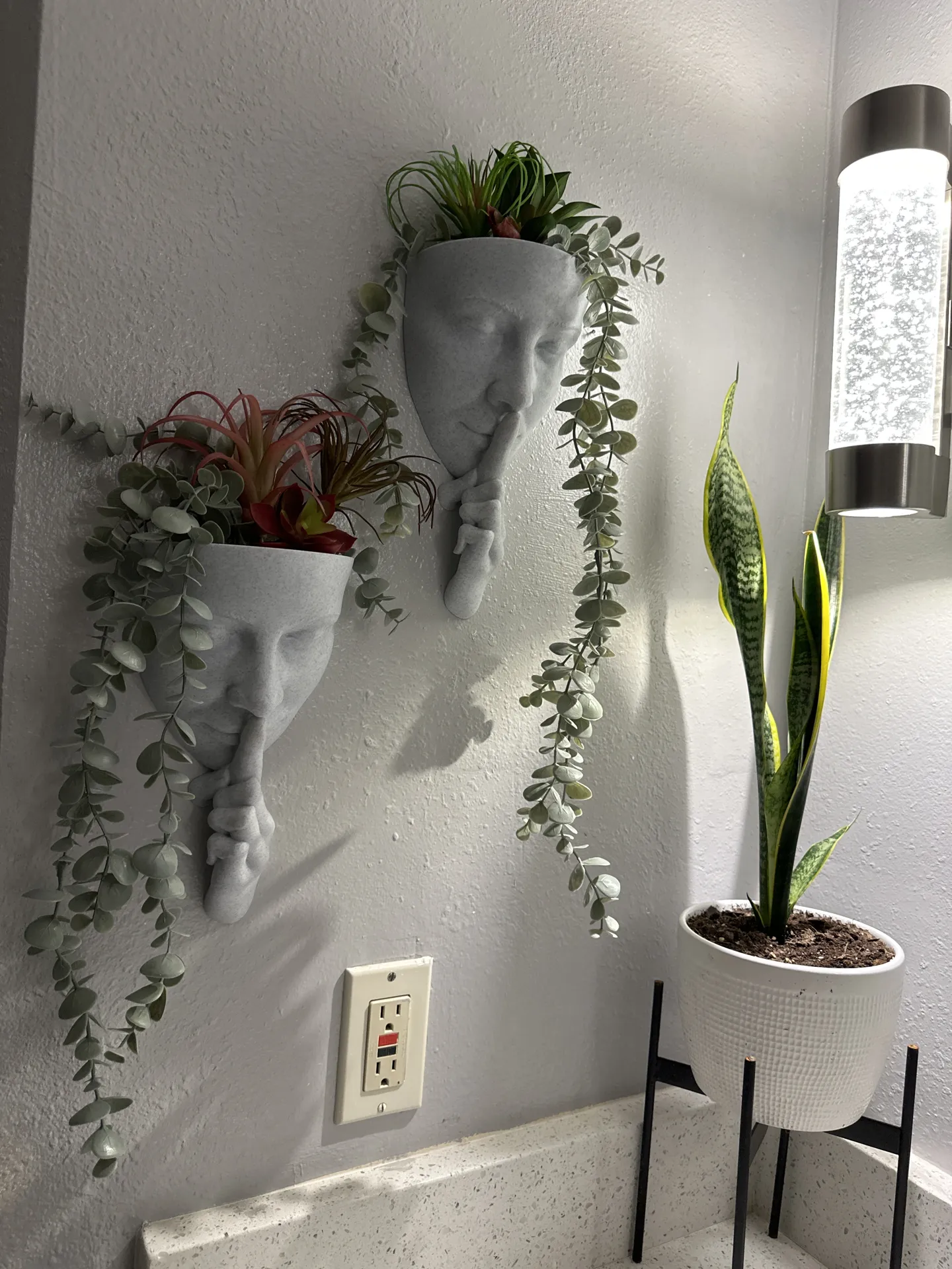 Add a touch of artistry and depth to your interior with this captivating wall planter designed in the shape of a contemplative human face. With a finger placed gently near the lips, this piece symbolizes reflection, wisdom, and serenity. It serves not only as a planter for your favorite succulents or air plants but also as a sculptural wall accent that sparks conversations. Perfect for modern, bohemian, or eclectic interiors seeking a unique statement piece.