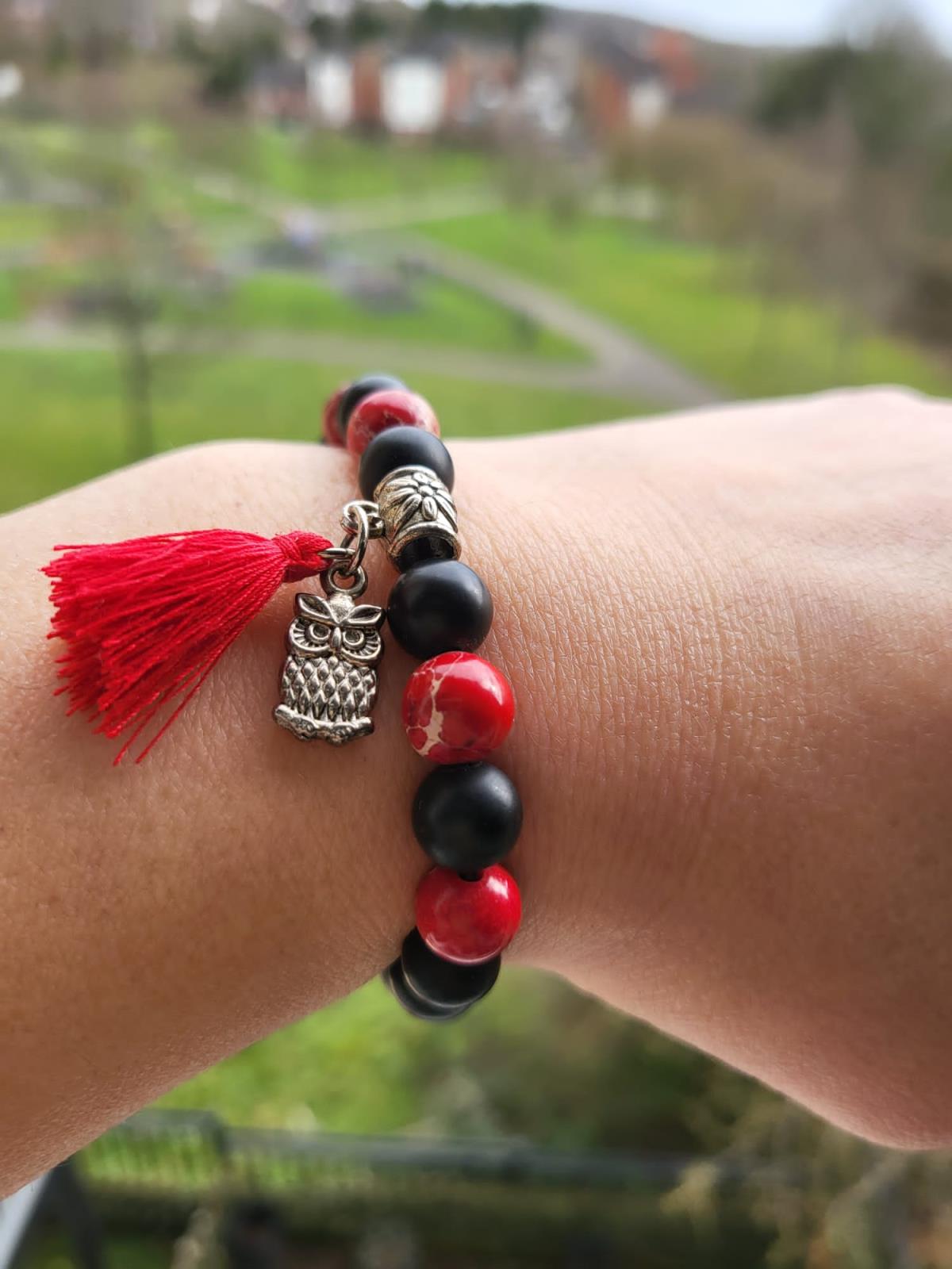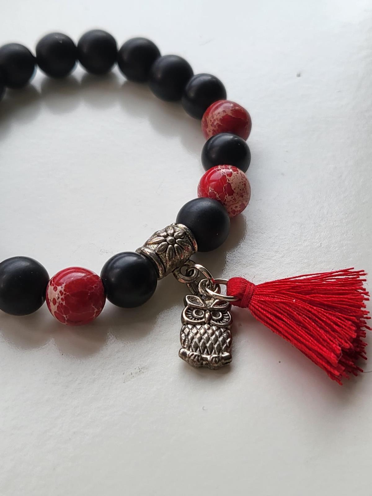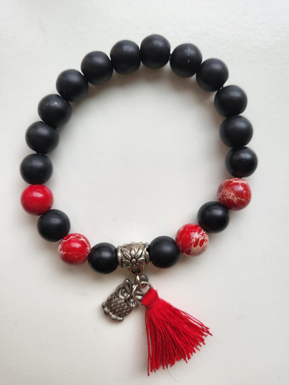 This handmade bracelet features genuine Variscite and Onyx gemstones, known in spiritual traditions for their calming and grounding qualities. Designed for everyday wear, this elegant piece combines natural beauty with meaningful symbolism.