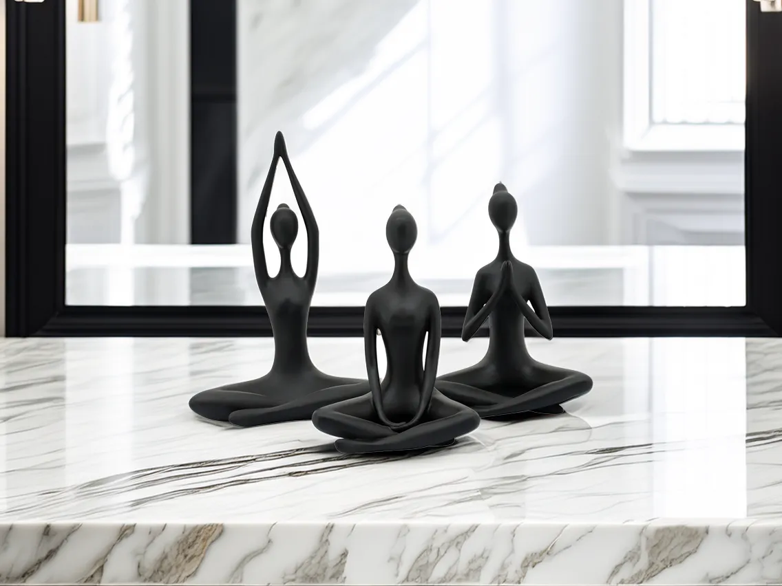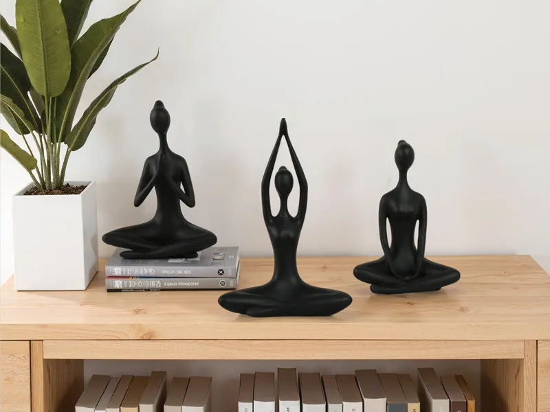 Bring balance and calm to your space with this elegant set of 3 abstract yoga and meditation statues. Each figure represents a different pose, encouraging mindfulness and inner peace. Perfect for yoga studios, shelves, or modern interiors.