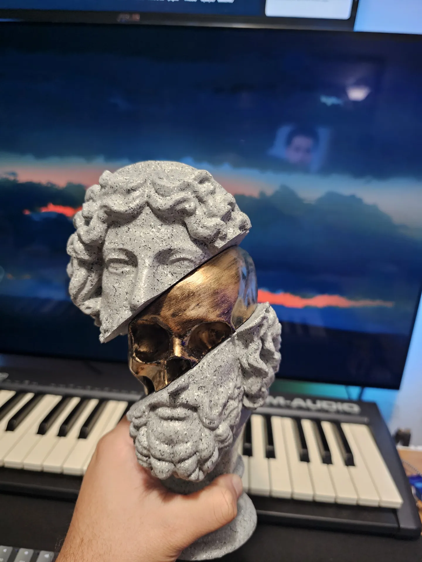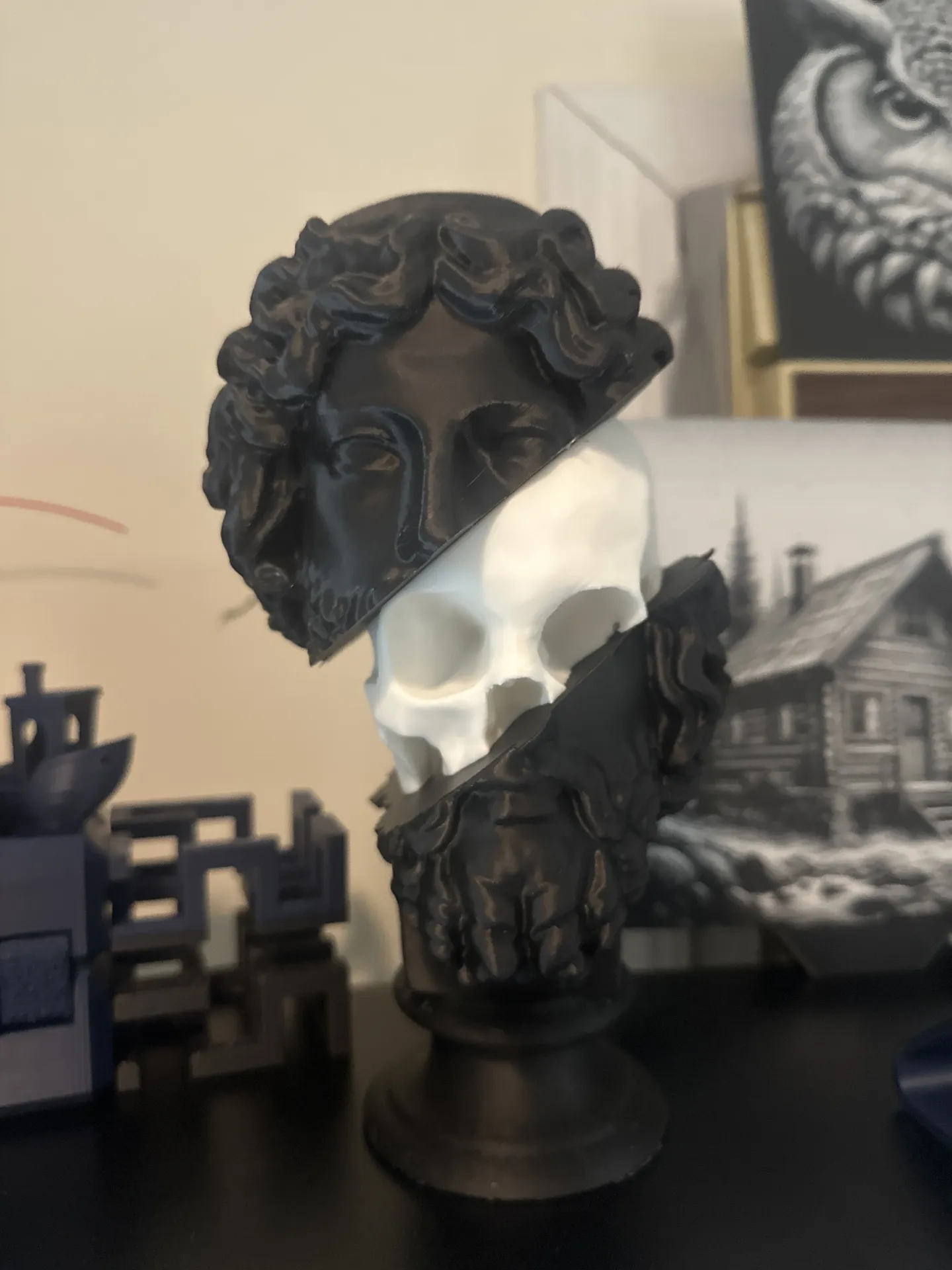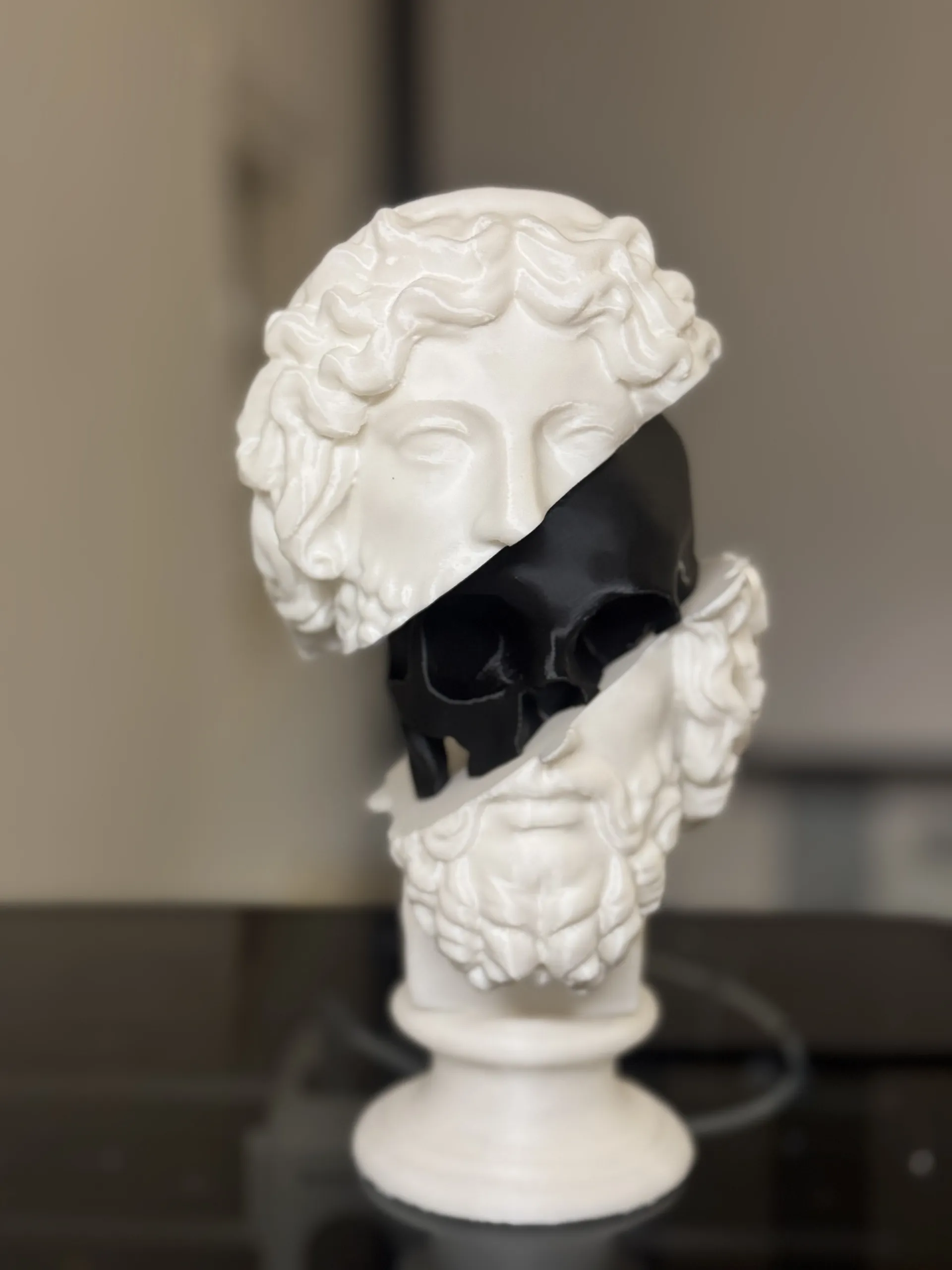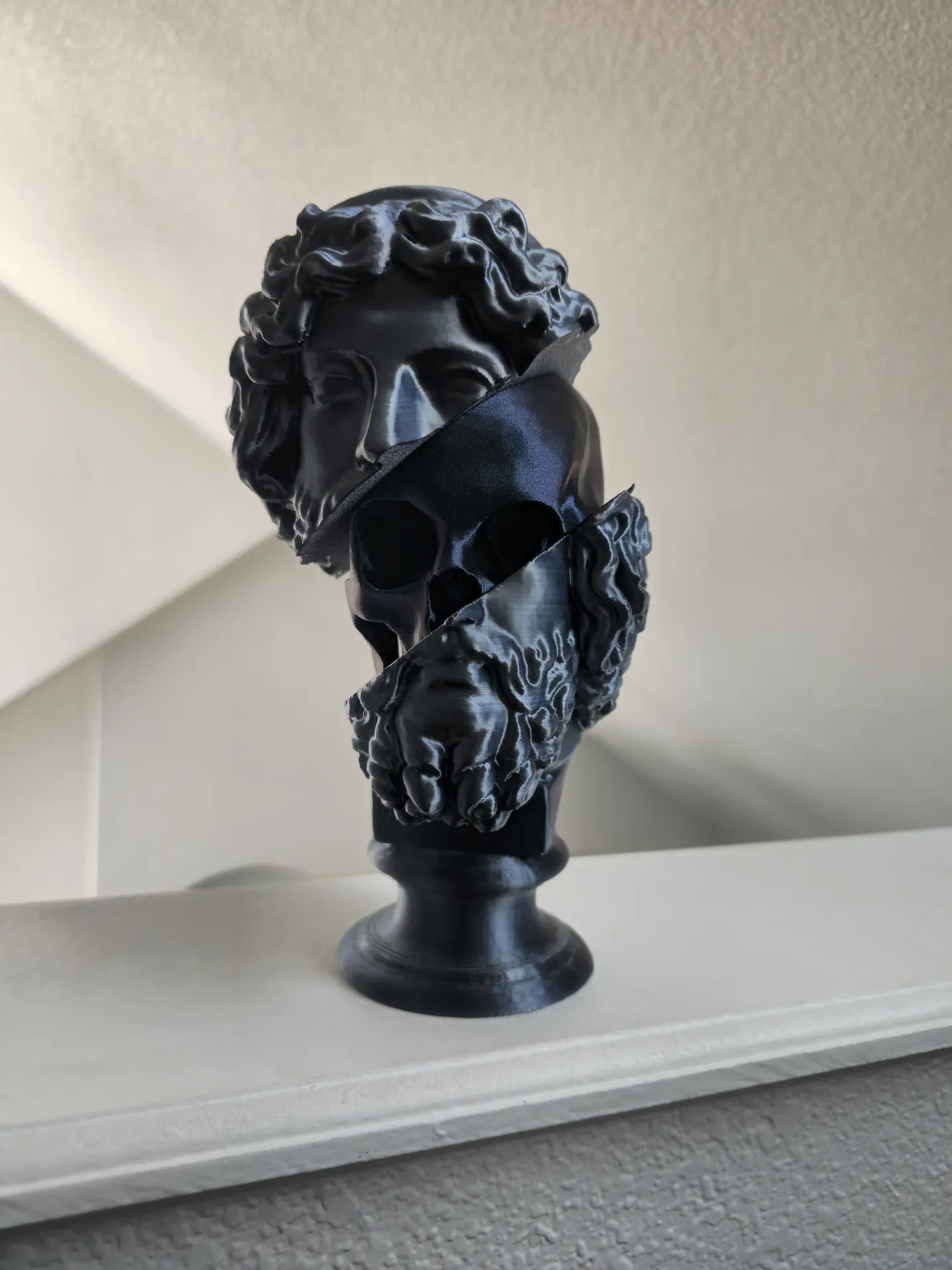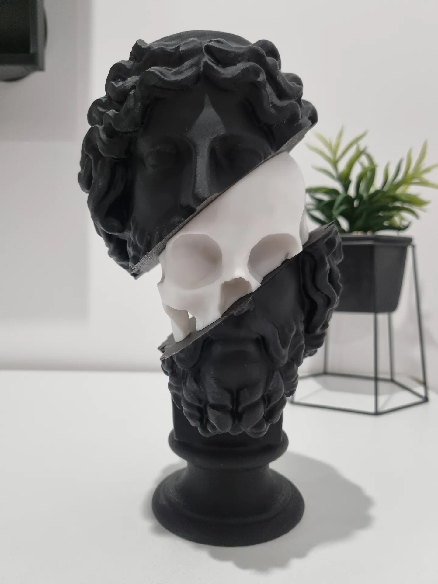 Crafted using high-quality 3D printing technology, this split bust captures the duality of immortality and mortality in a single piece.